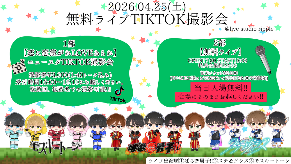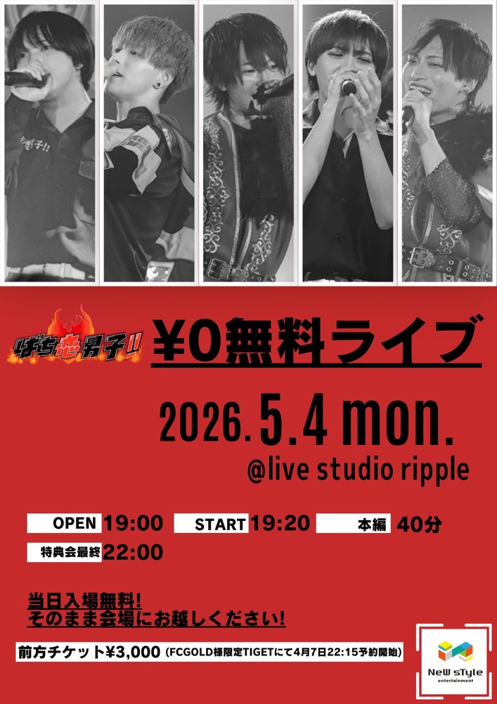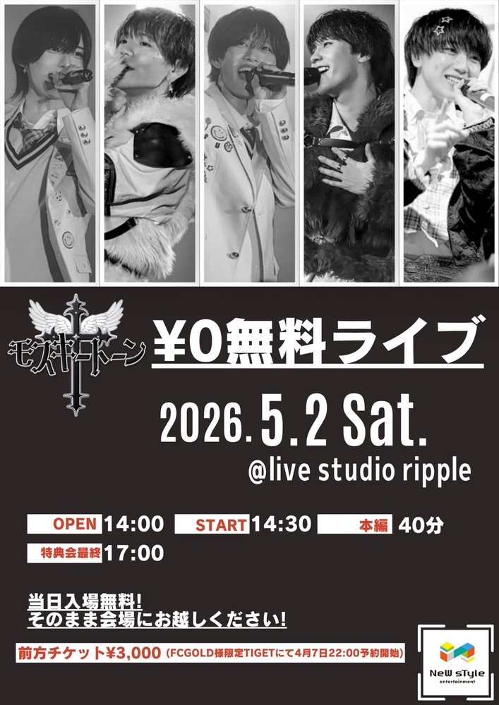 【ゴールド会員先行予約 前方チケット】¥0無料ライブ